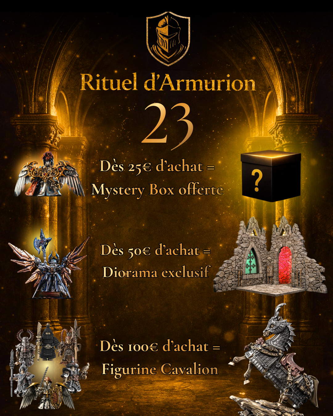 Chaque figurine Armurion combine savoir-faire et passion. Gravures, ornements et finitions transmettent la précision et la maîtrise de notre forgeage.